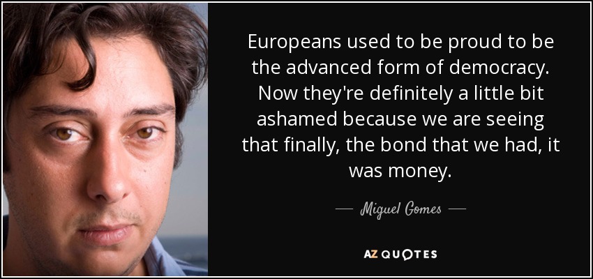 Europeans used to be proud to be the advanced form of democracy. Now they're definitely a little bit ashamed because we are seeing that finally, the bond that we had, it was money.