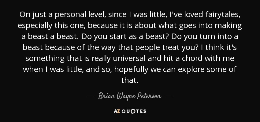 On just a personal level, since I was little, I've loved fairytales, especially this one, because it is about what goes into making a beast a beast. Do you start as a beast? Do you turn into a beast because of the way that people treat you? I think it's something that is really universal and hit a chord with me when I was little, and so, hopefully we can explore some of that.