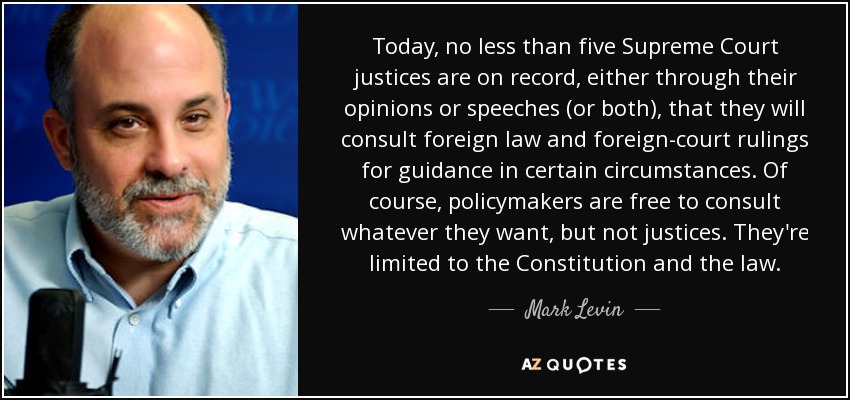 Today, no less than five Supreme Court justices are on record, either through their opinions or speeches (or both), that they will consult foreign law and foreign-court rulings for guidance in certain circumstances. Of course, policymakers are free to consult whatever they want, but not justices. They're limited to the Constitution and the law.