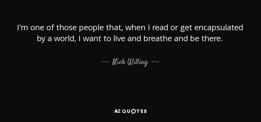 I'm one of those people that, when I read or get encapsulated by a world, I want to live and breathe and be there.