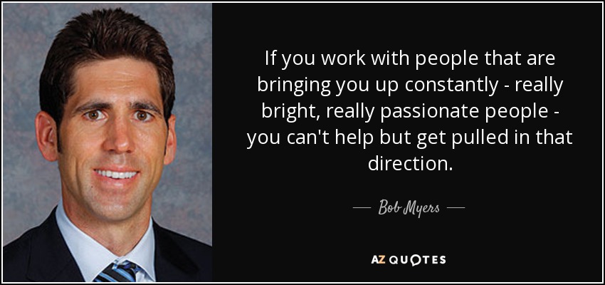 If you work with people that are bringing you up constantly - really bright, really passionate people - you can't help but get pulled in that direction.