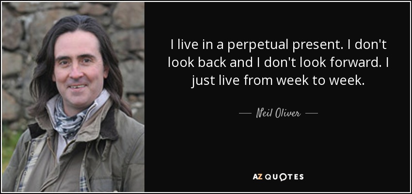 I live in a perpetual present. I don't look back and I don't look forward. I just live from week to week.