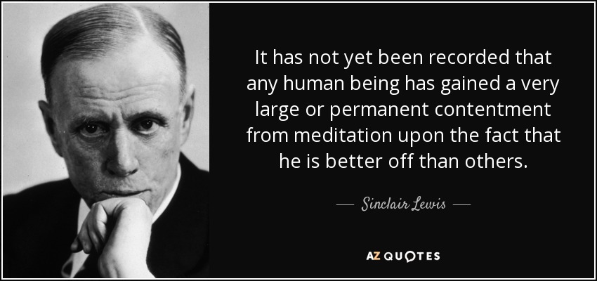 It has not yet been recorded that any human being has gained a very large or permanent contentment from meditation upon the fact that he is better off than others.