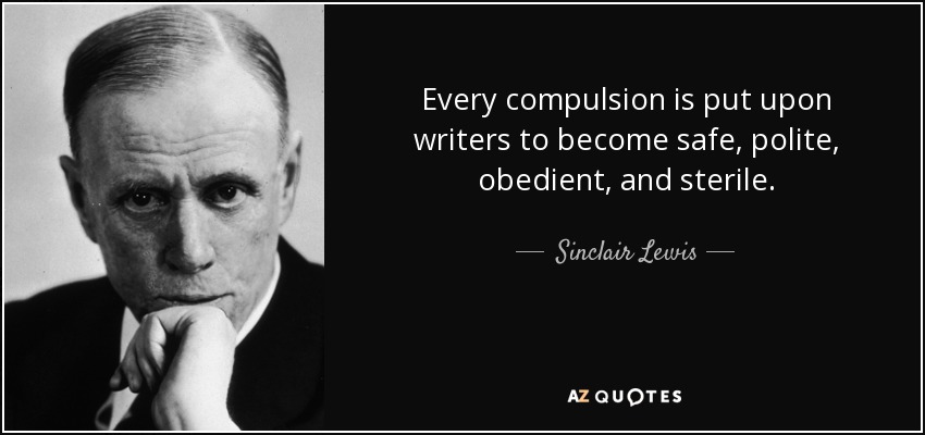Every compulsion is put upon writers to become safe, polite, obedient, and sterile.