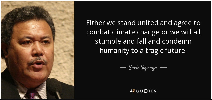 Either we stand united and agree to combat climate change or we will all stumble and fall and condemn humanity to a tragic future.
