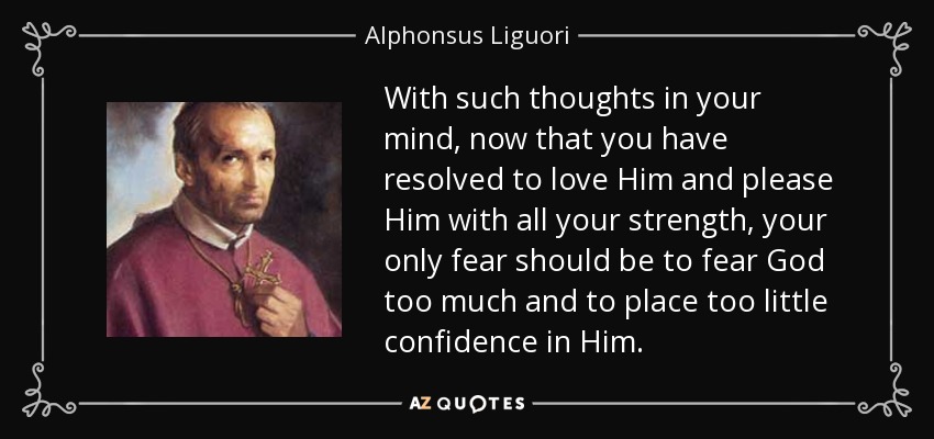 With such thoughts in your mind, now that you have resolved to love Him and please Him with all your strength, your only fear should be to fear God too much and to place too little confidence in Him.