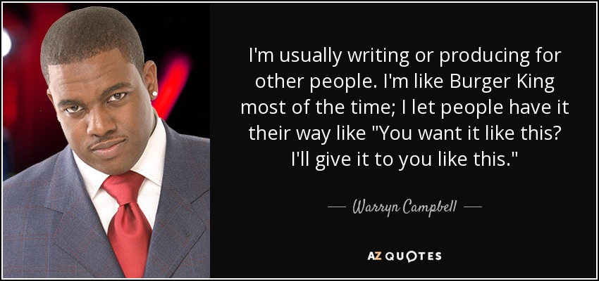 I'm usually writing or producing for other people. I'm like Burger King most of the time; I let people have it their way like "You want it like this? I'll give it to you like this."