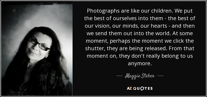 Photographs are like our children. We put the best of ourselves into them - the best of our vision, our minds, our hearts - and then we send them out into the world. At some moment, perhaps the moment we click the shutter, they are being released. From that moment on, they don't really belong to us anymore.
