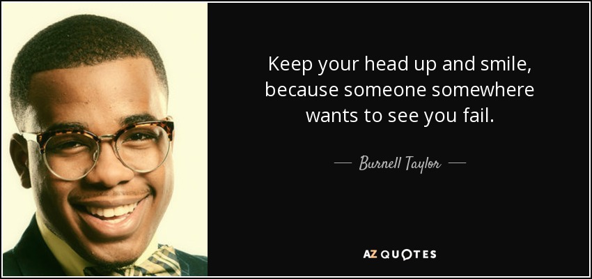 Keep your head up and smile, because someone somewhere wants to see you fail.