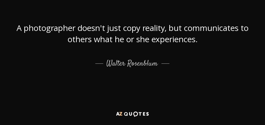 A photographer doesn't just copy reality, but communicates to others what he or she experiences.