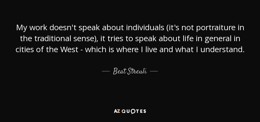 My work doesn't speak about individuals (it's not portraiture in the traditional sense), it tries to speak about life in general in cities of the West - which is where I live and what I understand.