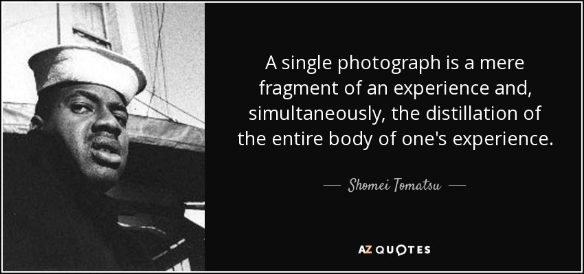A single photograph is a mere fragment of an experience and, simultaneously, the distillation of the entire body of one's experience.