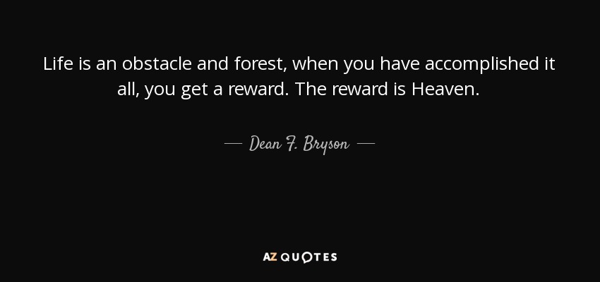 Life is an obstacle and forest, when you have accomplished it all, you get a reward. The reward is Heaven.