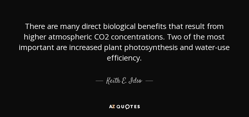 There are many direct biological benefits that result from higher atmospheric CO2 concentrations. Two of the most important are increased plant photosynthesis and water-use efficiency.