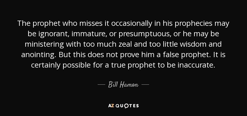 Bill Hamon (1997). “Apostles, Prophets and the Coming Moves of God: God's End-Time Plans for His Church and Planet Earth”, p.251, Destiny Image Publishers