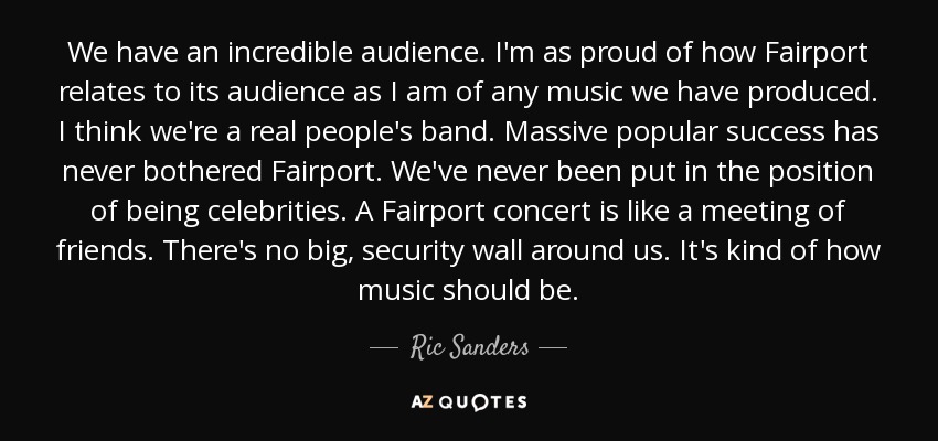 We have an incredible audience. I'm as proud of how Fairport relates to its audience as I am of any music we have produced. I think we're a real people's band. Massive popular success has never bothered Fairport. We've never been put in the position of being celebrities. A Fairport concert is like a meeting of friends. There's no big, security wall around us. It's kind of how music should be.
