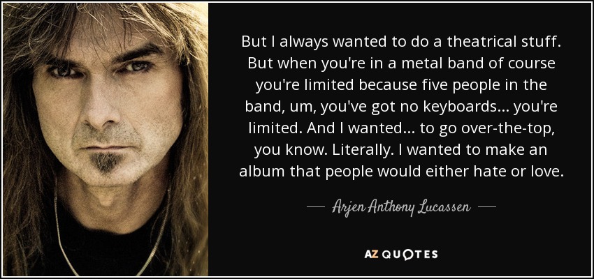 But I always wanted to do a theatrical stuff. But when you're in a metal band of course you're limited because five people in the band, um, you've got no keyboards... you're limited. And I wanted... to go over-the-top, you know. Literally. I wanted to make an album that people would either hate or love.