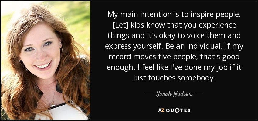 My main intention is to inspire people. [Let] kids know that you experience things and it's okay to voice them and express yourself. Be an individual. If my record moves five people, that's good enough. I feel like I've done my job if it just touches somebody.