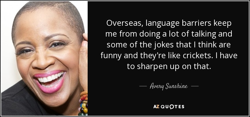 Overseas, language barriers keep me from doing a lot of talking and some of the jokes that I think are funny and they're like crickets. I have to sharpen up on that.
