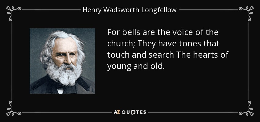 For bells are the voice of the church; They have tones that touch and search The hearts of young and old.