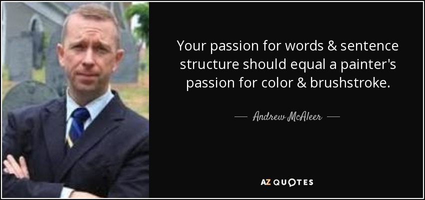 Your passion for words & sentence structure should equal a painter's passion for color & brushstroke.