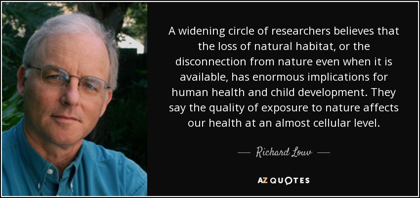 A widening circle of researchers believes that the loss of natural habitat, or the disconnection from nature even when it is available, has enormous implications for human health and child development. They say the quality of exposure to nature affects our health at an almost cellular level.