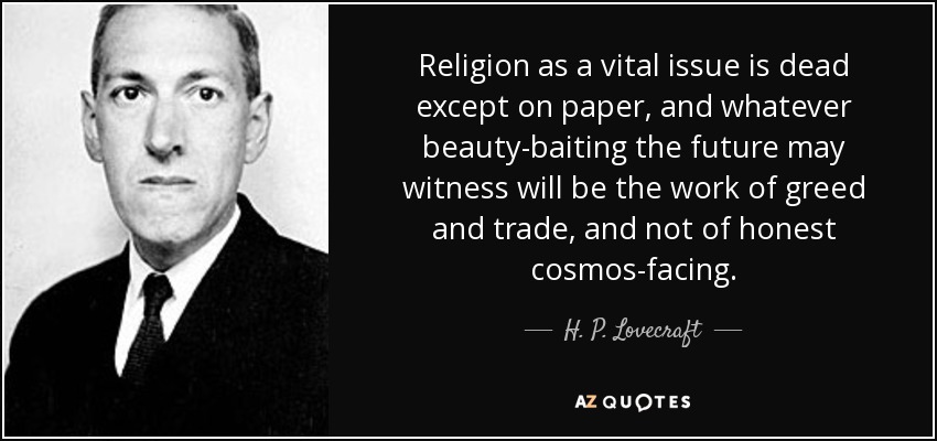 Religion as a vital issue is dead except on paper, and whatever beauty-baiting the future may witness will be the work of greed and trade, and not of honest cosmos-facing.