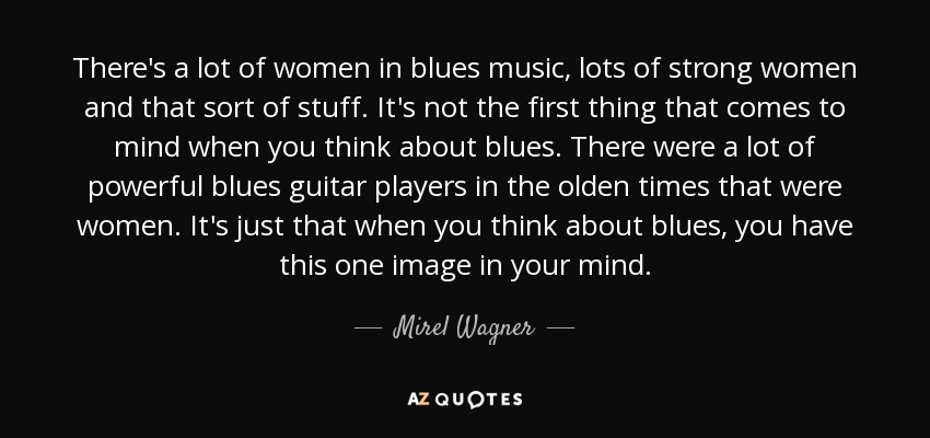There's a lot of women in blues music, lots of strong women and that sort of stuff. It's not the first thing that comes to mind when you think about blues. There were a lot of powerful blues guitar players in the olden times that were women. It's just that when you think about blues, you have this one image in your mind.