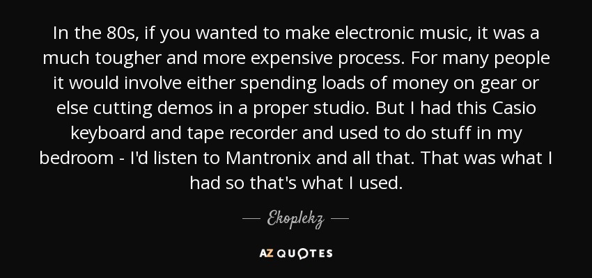 In the 80s, if you wanted to make electronic music, it was a much tougher and more expensive process. For many people it would involve either spending loads of money on gear or else cutting demos in a proper studio. But I had this Casio keyboard and tape recorder and used to do stuff in my bedroom - I'd listen to Mantronix and all that. That was what I had so that's what I used.