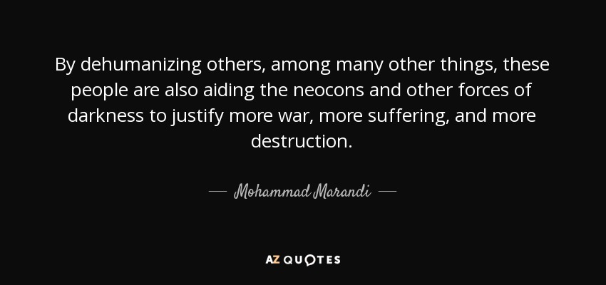 By dehumanizing others, among many other things, these people are also aiding the neocons and other forces of darkness to justify more war, more suffering, and more destruction.