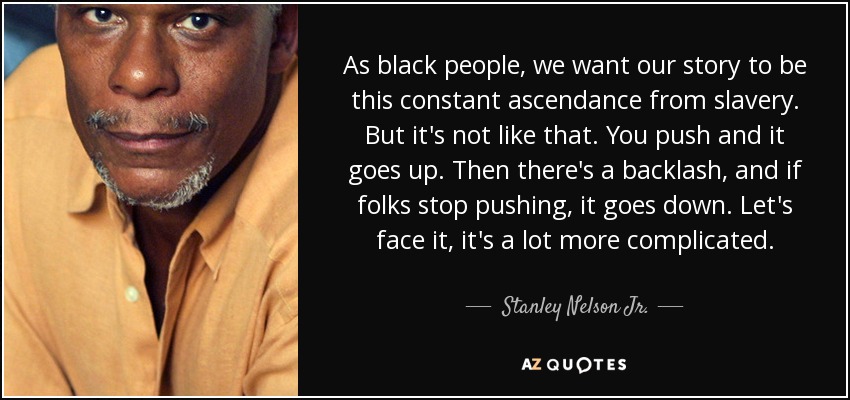 As black people, we want our story to be this constant ascendance from slavery. But it's not like that. You push and it goes up. Then there's a backlash, and if folks stop pushing, it goes down. Let's face it, it's a lot more complicated.