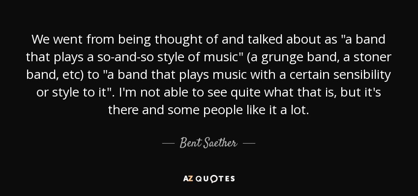 We went from being thought of and talked about as "a band that plays a so-and-so style of music" (a grunge band, a stoner band, etc) to "a band that plays music with a certain sensibility or style to it". I'm not able to see quite what that is, but it's there and some people like it a lot.