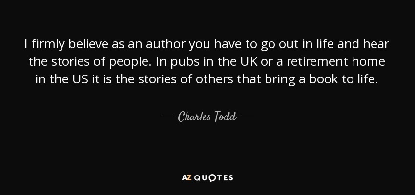 I firmly believe as an author you have to go out in life and hear the stories of people. In pubs in the UK or a retirement home in the US it is the stories of others that bring a book to life.