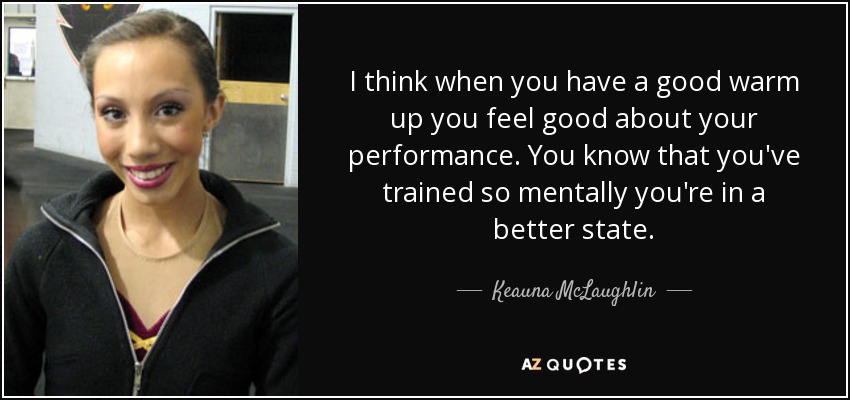 I think when you have a good warm up you feel good about your performance. You know that you've trained so mentally you're in a better state.