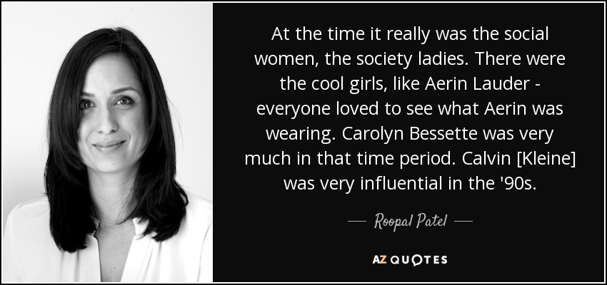 At the time it really was the social women, the society ladies. There were the cool girls, like Aerin Lauder - everyone loved to see what Aerin was wearing. Carolyn Bessette was very much in that time period. Calvin [Kleine] was very influential in the '90s.