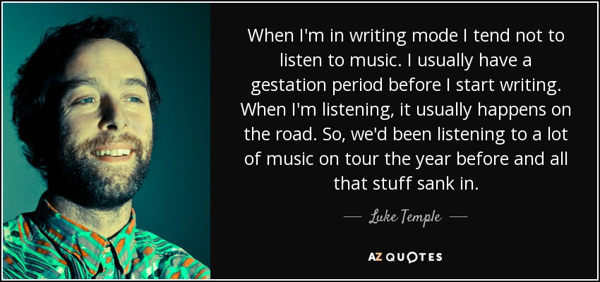 When I'm in writing mode I tend not to listen to music. I usually have a gestation period before I start writing. When I'm listening, it usually happens on the road. So, we'd been listening to a lot of music on tour the year before and all that stuff sank in.