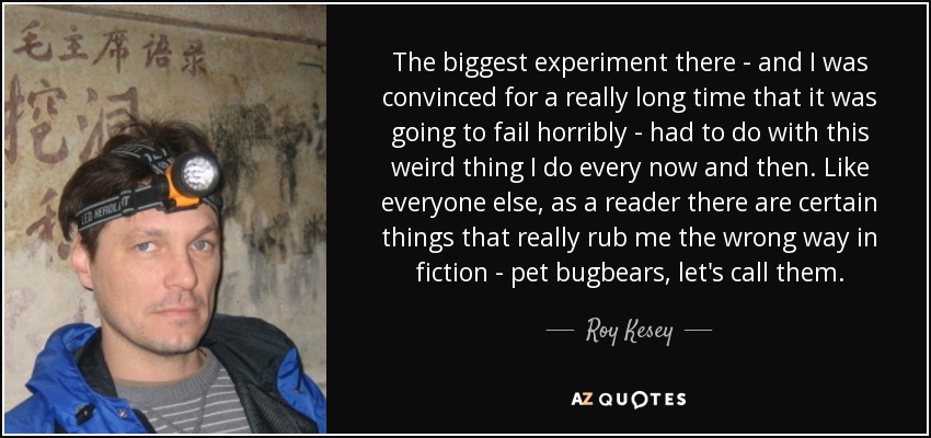 The biggest experiment there - and I was convinced for a really long time that it was going to fail horribly - had to do with this weird thing I do every now and then. Like everyone else, as a reader there are certain things that really rub me the wrong way in fiction - pet bugbears, let's call them.