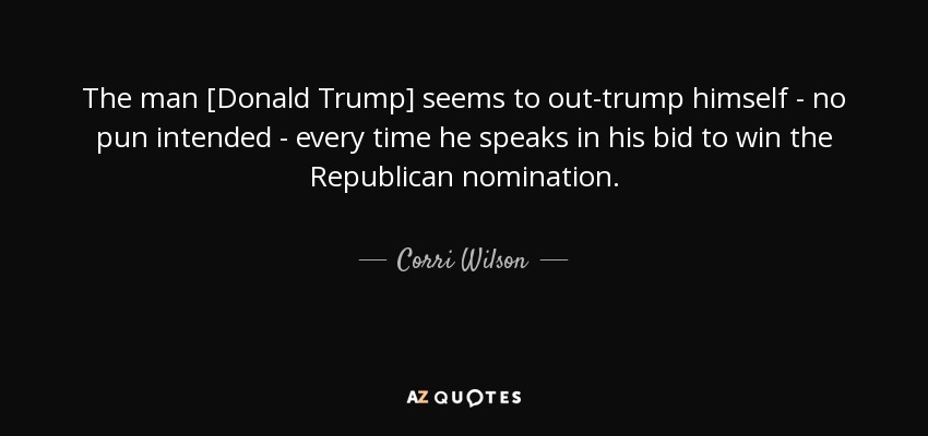The man [Donald Trump] seems to out-trump himself - no pun intended - every time he speaks in his bid to win the Republican nomination.