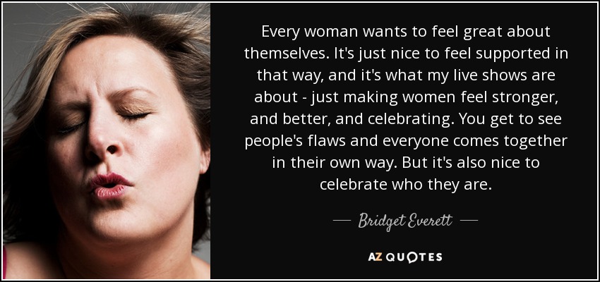Every woman wants to feel great about themselves. It's just nice to feel supported in that way, and it's what my live shows are about - just making women feel stronger, and better, and celebrating. You get to see people's flaws and everyone comes together in their own way. But it's also nice to celebrate who they are.