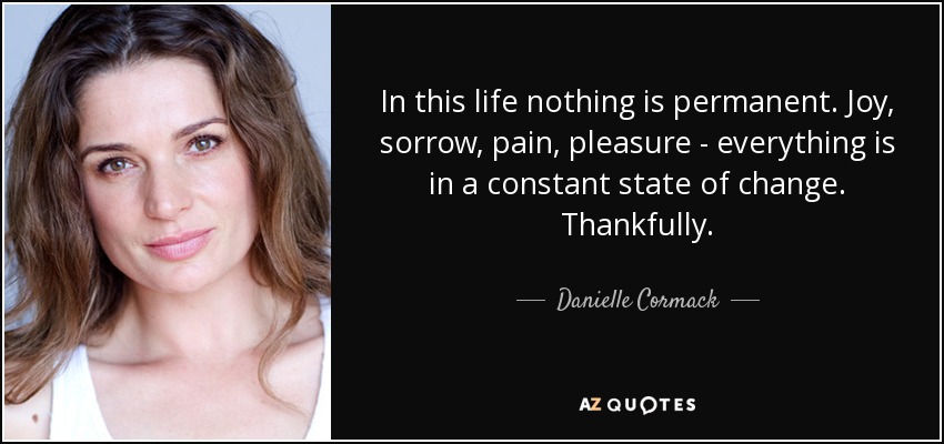 In this life nothing is permanent. Joy, sorrow, pain, pleasure - everything is in a constant state of change. Thankfully.