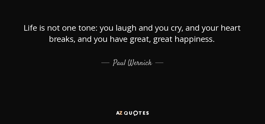 Life is not one tone: you laugh and you cry, and your heart breaks, and you have great, great happiness.