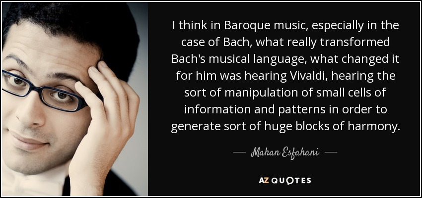 I think in Baroque music, especially in the case of Bach, what really transformed Bach's musical language, what changed it for him was hearing Vivaldi, hearing the sort of manipulation of small cells of information and patterns in order to generate sort of huge blocks of harmony.