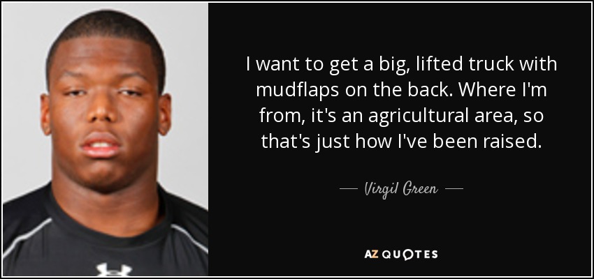 I want to get a big, lifted truck with mudflaps on the back. Where I'm from, it's an agricultural area, so that's just how I've been raised.