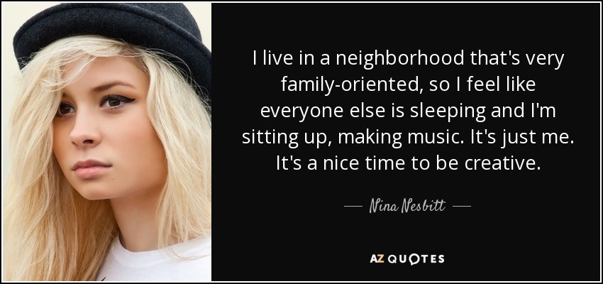 I live in a neighborhood that's very family-oriented, so I feel like everyone else is sleeping and I'm sitting up, making music. It's just me. It's a nice time to be creative.