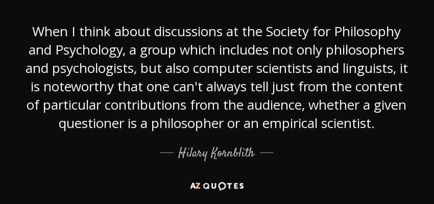 When I think about discussions at the Society for Philosophy and Psychology, a group which includes not only philosophers and psychologists, but also computer scientists and linguists, it is noteworthy that one can't always tell just from the content of particular contributions from the audience, whether a given questioner is a philosopher or an empirical scientist.