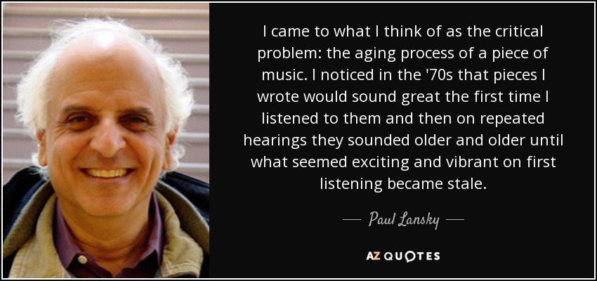 I came to what I think of as the critical problem: the aging process of a piece of music. I noticed in the '70s that pieces I wrote would sound great the first time I listened to them and then on repeated hearings they sounded older and older until what seemed exciting and vibrant on first listening became stale.