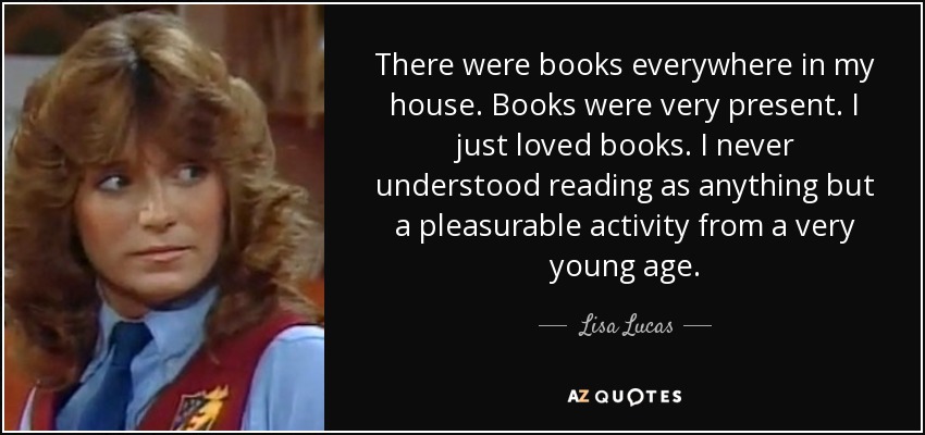 There were books everywhere in my house. Books were very present. I just loved books. I never understood reading as anything but a pleasurable activity from a very young age.