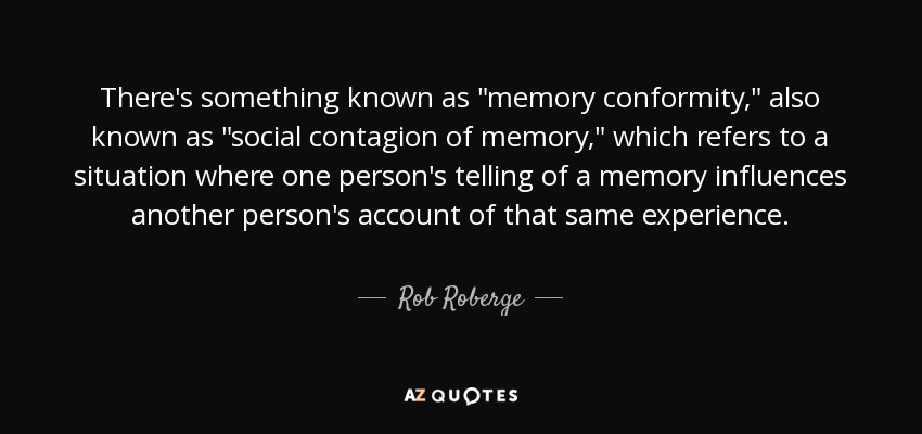 There's something known as "memory conformity," also known as "social contagion of memory," which refers to a situation where one person's telling of a memory influences another person's account of that same experience.