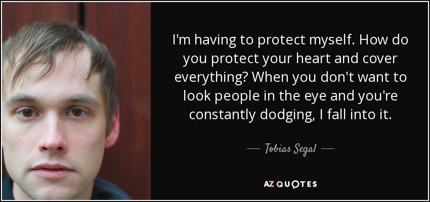 I'm having to protect myself. How do you protect your heart and cover everything? When you don't want to look people in the eye and you're constantly dodging, I fall into it.