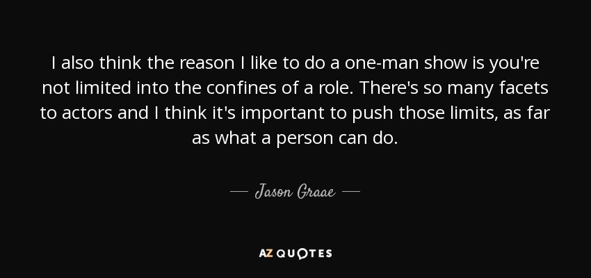 I also think the reason I like to do a one-man show is you're not limited into the confines of a role. There's so many facets to actors and I think it's important to push those limits, as far as what a person can do.